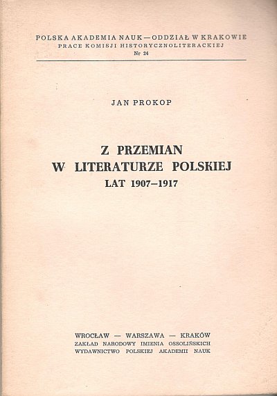 Z przemian w literaturze polskiej lat 1907-1917 / Jan Prokop ; Polska Akademia Nauk. Oddział w Krakowie. - Wrocław ; Zakład Narodowy im. Ossolińskich, 1970. - 110, [1] strona ; 24 cm.