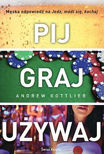 Tyt. oryg.: Drink, play, f@#k. U góry okł.: Męska odpowieź na Jedz, módl się, kochaj.