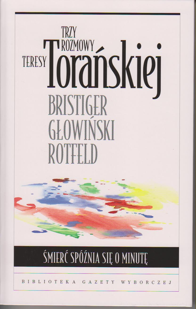 Tyt. grzbietowy: Trzy rozmowy Teresy Torańskiej : Michał Bristiger, Michał Głowiński, Adam Daniel Rotfeld.