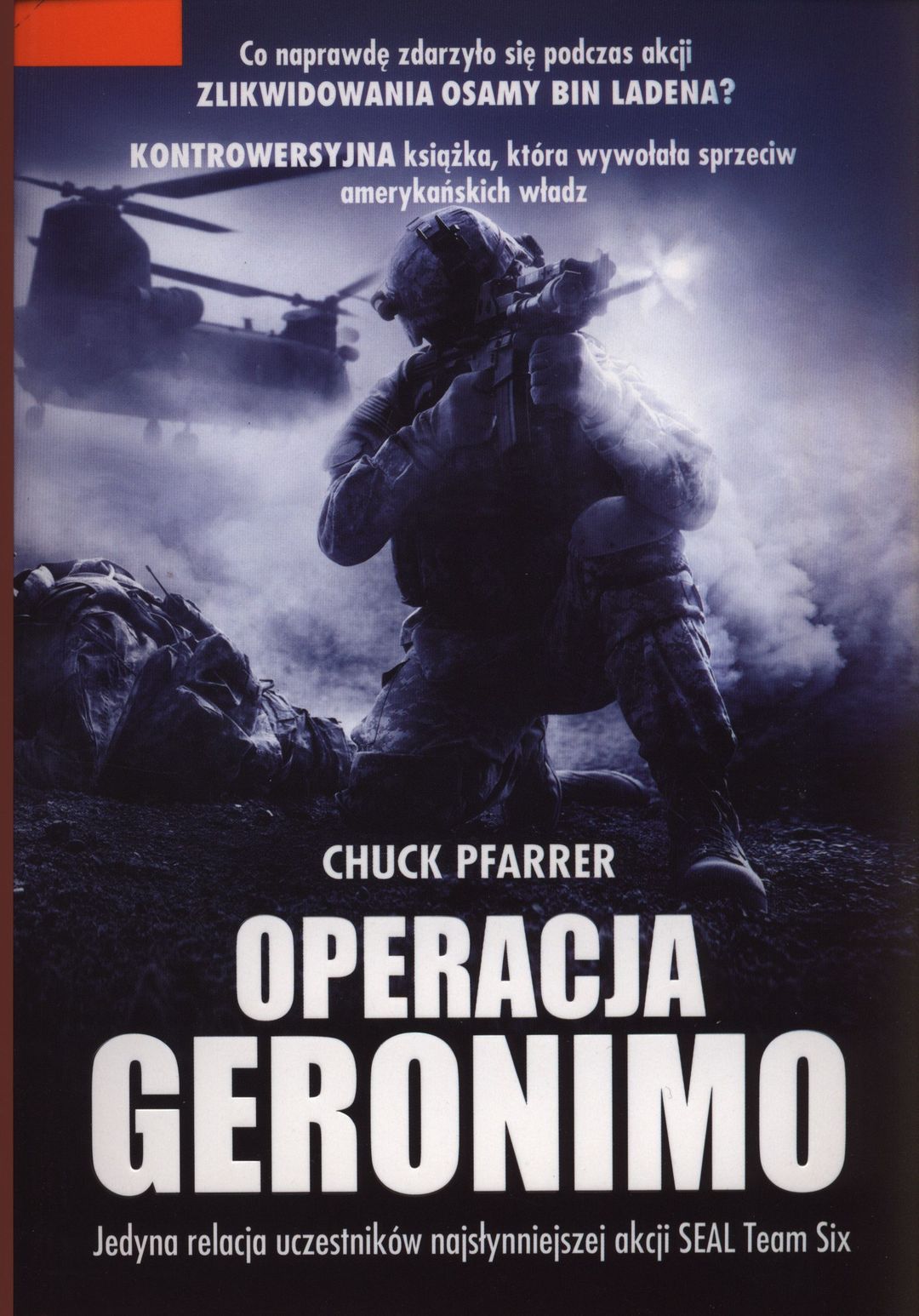 Tyt. oryg.: "SEAL target Geronimo : the inside story of the mission to kill Osama Bin Laden" 2011. Na okł. podtyt.: jedyna relacja uczestników najsłynniejszej akcji SEAL Team Six.