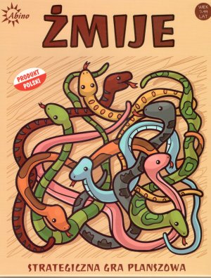 Żmije. - Gospodarz : Abino Joanna Urbańska, [2021]. - 1 pudełko (plansza, 20 pionków w 4 kolorach, instrukcja) ; 21x25x5 cm.