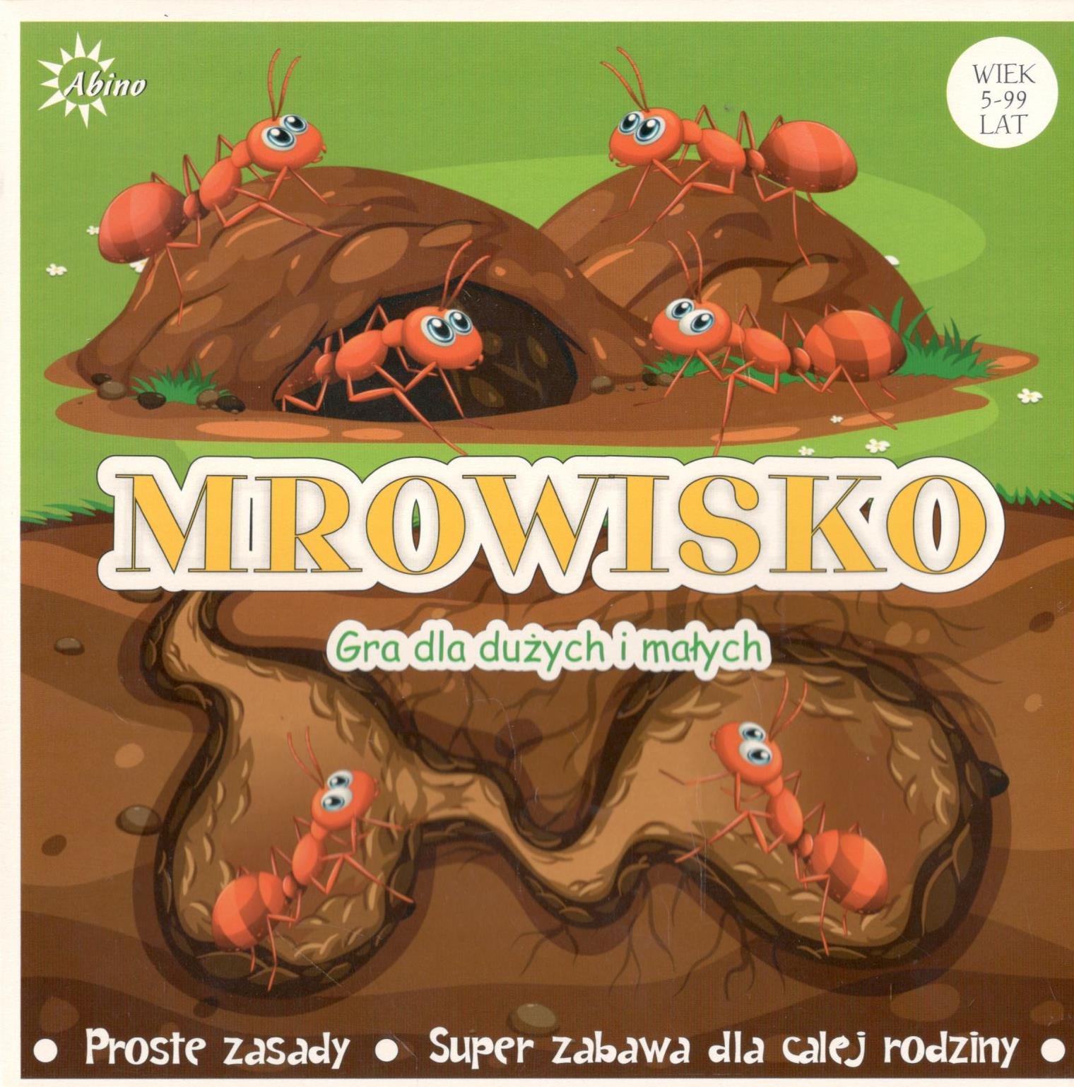Mrowisko. - Gospodarz : Abino, [2019]. - 1 pudełko (44 karty z tunelami, 1 karta wyjścia z mrowiska, 4 pionki, kostka, instrukcja) ; 20x20x5 cm.