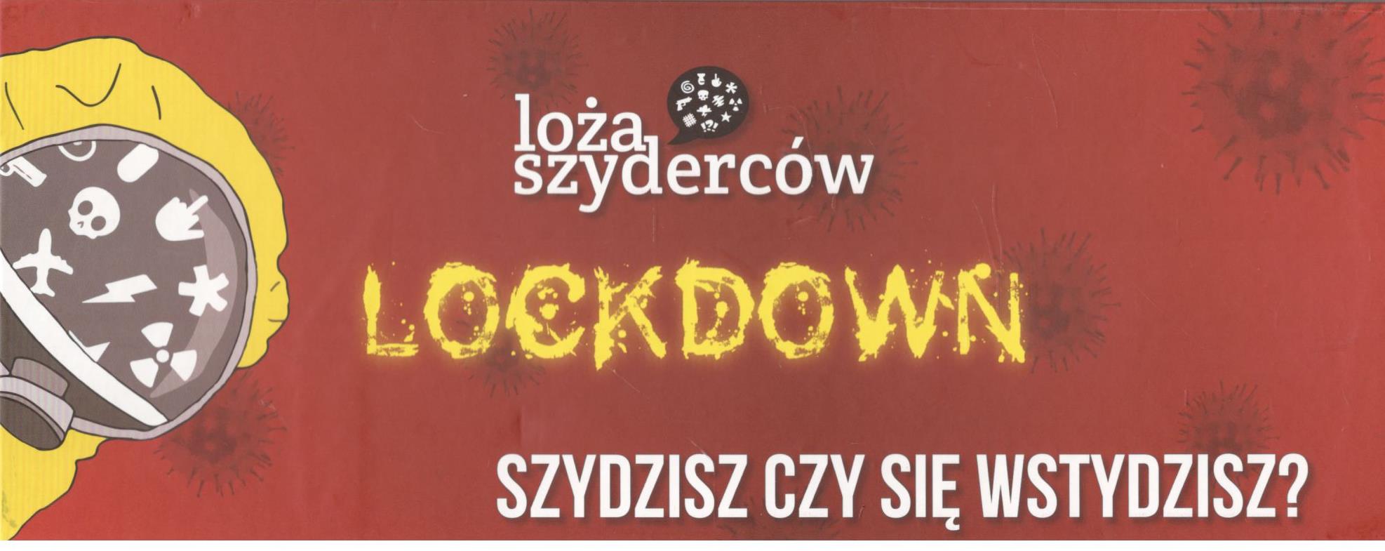 Loża szyderców : lockdown. - Kraków : Simple Solution Gałaszek, Tracz Spółka Jawna, [2022]. - 1 pudełko (350 kart odpowiedzi, 100 kart pytań i 50 kart specjalnych, instrukcja) ; 26x10x8 cm.