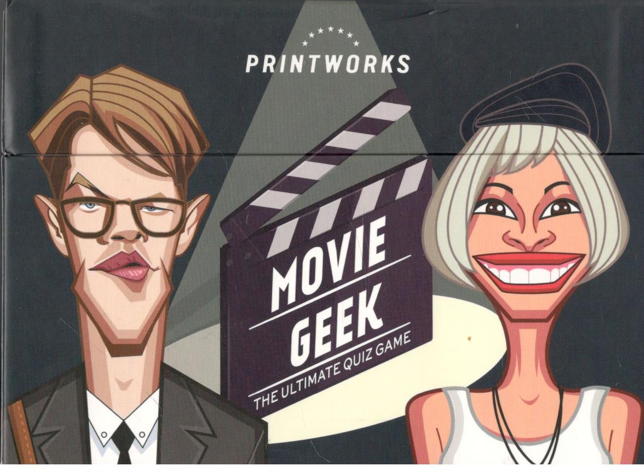 Movie geek : the ultimate quiz game. - [Sztokholm] : Printworks, [2022]. - 1 pudełko (50 kart, notes do zliczania punktów) ; 17x12x7 cm.