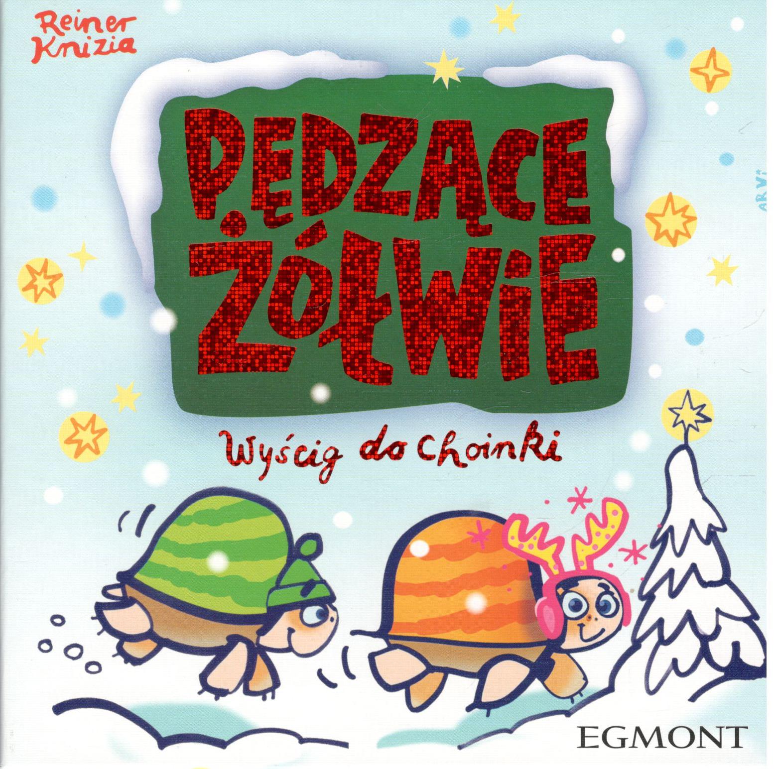 Pędzące żółwie: wyścig do choinki / Reiner Knizia ; ilustracje: Rolf Arvi Vogt. - Warszawa : Egmont, © 2022. - 1 pudełko (świąteczna plansza, 5 figurek żółwi w nowych kolorach, 5 płytek z żółwiami w czapkach, 52 zimowe karty, instrukcja) : ilustracje ; 20x20x5 cm.