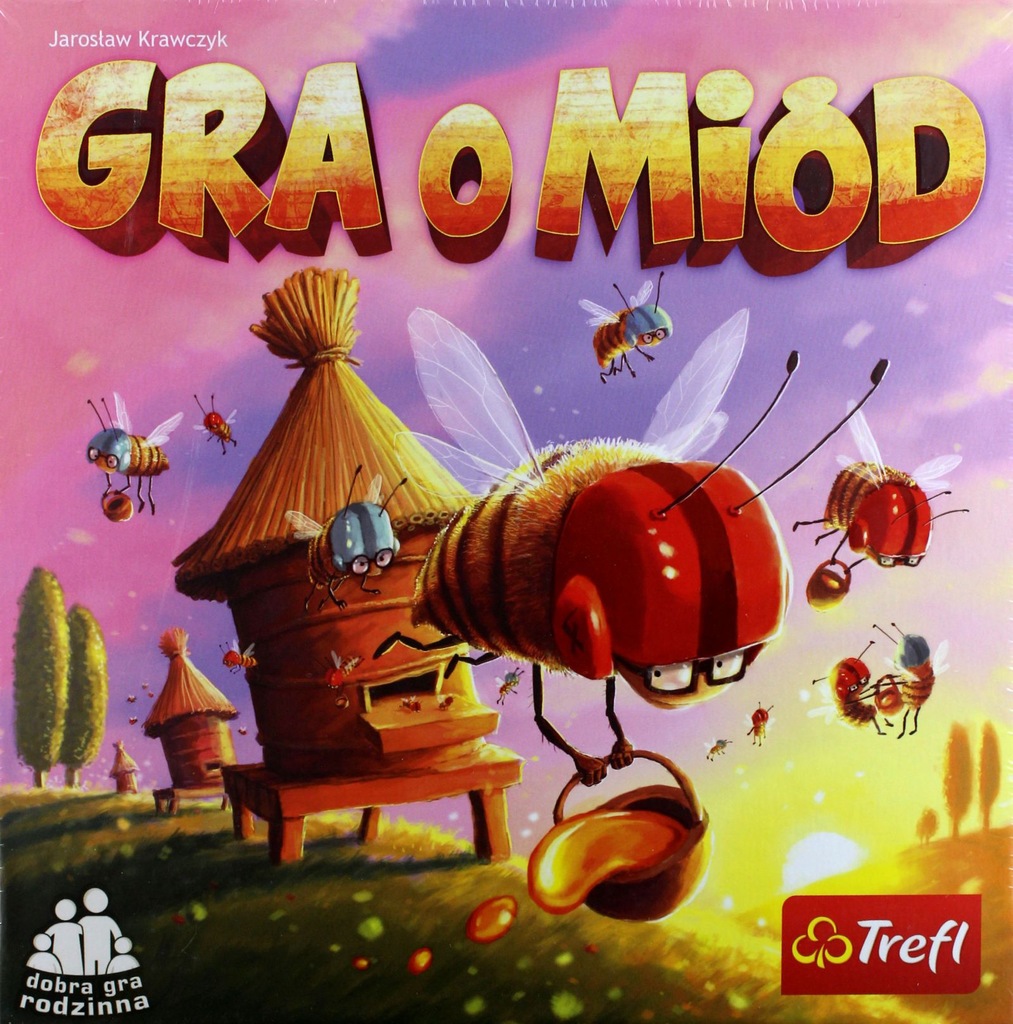 Gra o miód / Jarosław Krawczyk ; [ilustracje: Tomek Larek]. - Gdynia : Trefl, [2017]. - 1 pudełko (84 tekturowe kafelki, 220 żetonów graczy, 4 znaczniki graczy, 20 żetonów zwycięstwa, instrukcja) ; 26x26x4 cm.
