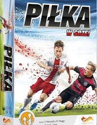 Piłka w grze! / autorzy: Francesco Nepitello, Marco Maggi ; ilustracje: Tomek Larek. - Warszawa : Grupa Wydawnicza Foksal Sp. z o.o., © 2015. - 1 pudełko (2 karty drużyn, 4 karty ustawienia drużyny, 96 kart akcji, 6 kart taktyki, 10 znaczników goli, żeton piłki, plansza boiska, instrukcja) : ilustracje ; 14x14x4 cm.