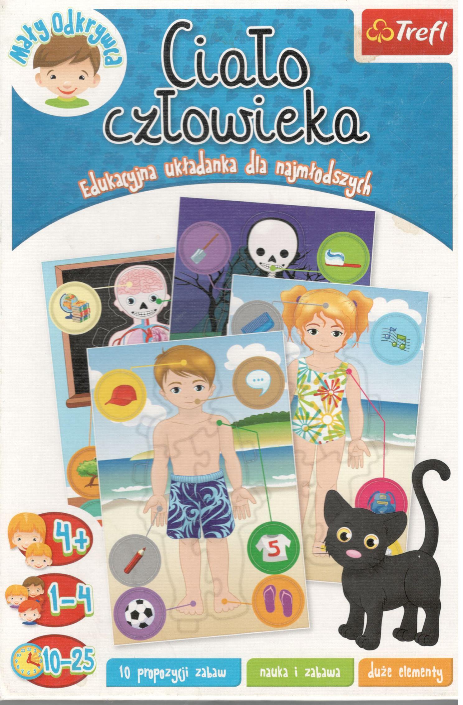 Na pudełku: 10 propozycji zabaw, nauka i zabawa, duże elementy.