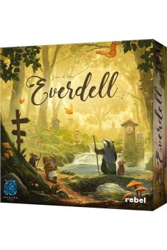 Everdell / James A. Wilson ; ilustracje: Andrew Bosley ; tłumaczenie: Monika Żabicka. - Gdańsk : Rebel, © 2023. - 1 pudełko (128 kart, plansza, 30 jagód, 30 gałązek, 25 bryłek żywicy, 20 kamyków, 24 robotników, wieczne drzewo, 4 żetony wydarzeń podstawowych, 11 kart lasu, 16 kart wydarzeń specjalnych, 30 żetonów punktów, 20 żetonów użycia, 8 ścienna kość, instrukcja) ; 30x30x7 cm.