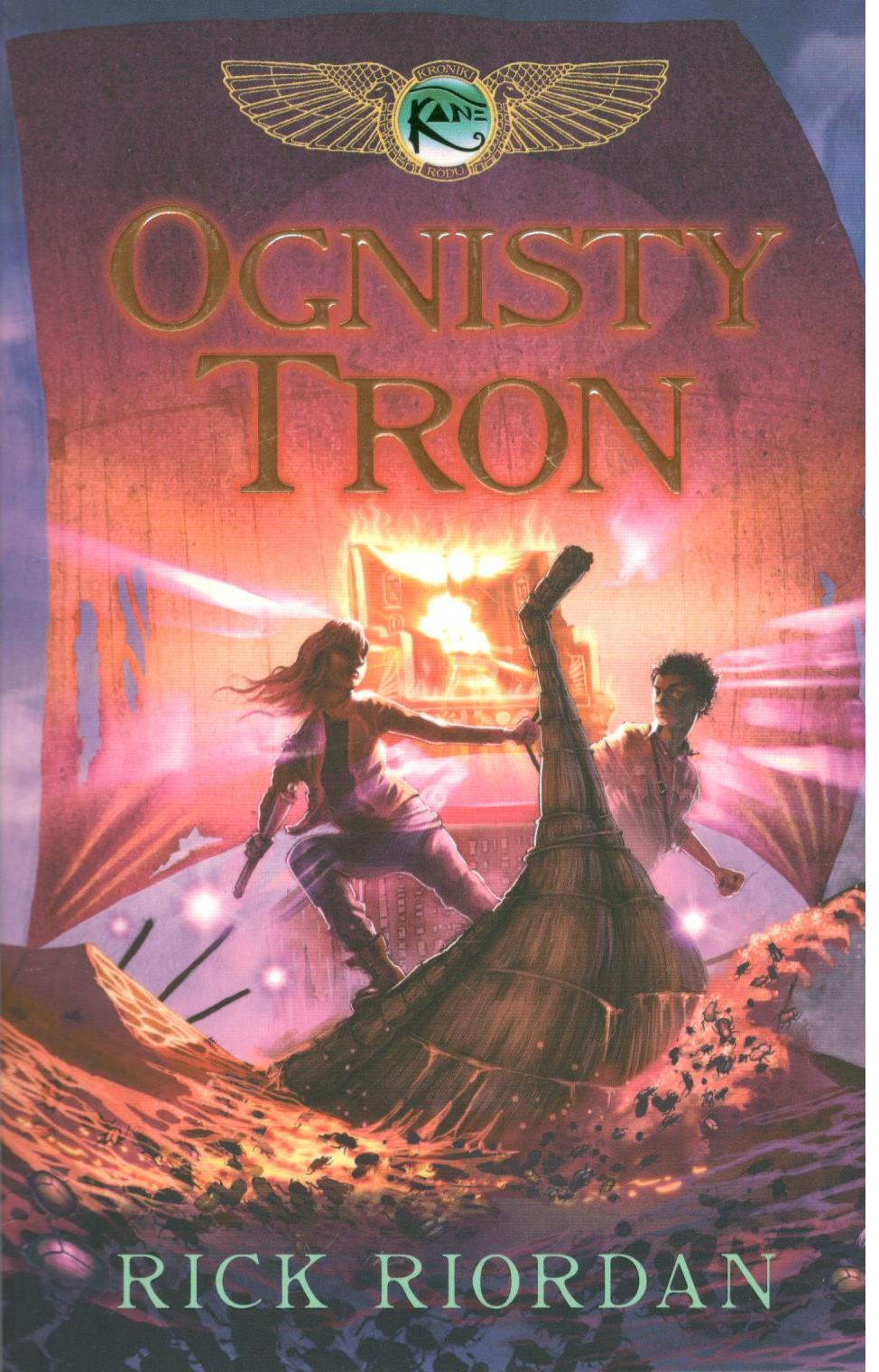Tytuł oryginału: "The throne of fire" 2011. Tytuł oryginału cyklu: "The Kane chronicles".