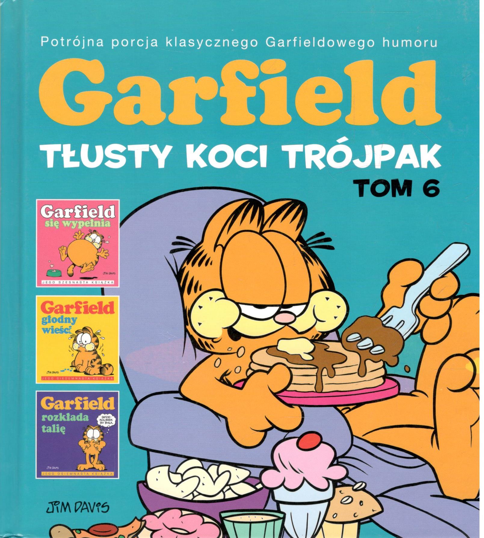 Tytuł oryginału: "Garfield fat cat 3-pack. Vol. 6" 2009. Tytuły poszczególnych części: "Garfield rounds out" 1988, "Garfield chews the fat" 1989, "Garfield goes to waist" 1990.