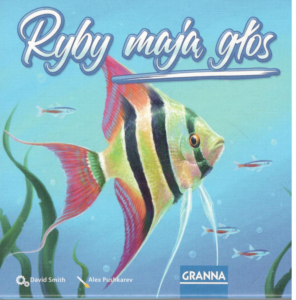Ryby mają głos / [autor] David Smith ; [ilustracje] Alex Pushkarev. - Warszawa : Granna, © 2021. - 1 pudełko (84 karty rybek, 3 karty celu, 1 karta skarbu, notes, instrukcja) : ilustracje ; 14x14x6 cm.