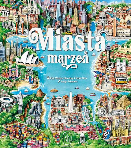 Miasta marzeń / autorzy: Phil Walker-Harding i Steve Finn ; ilustracje: Jorge Tabanera. - Warszawa-Wesoła : Wydawnictwo Nasza Księgarnia, © 2024. - 1 pudełko (32 fragmenty dzielnic, 4 startowe fragmenty dzielnic, 48 atrakcji, gwiazdka, 8 miast, woreczek, 4 karty pomocy, 100 budynków, 32 robotników, 12 znaczników celów, 4 znaczniki punktów, 32 karty celów, plansza, instrukcja) : ilustracje ; 23x23x7 cm.