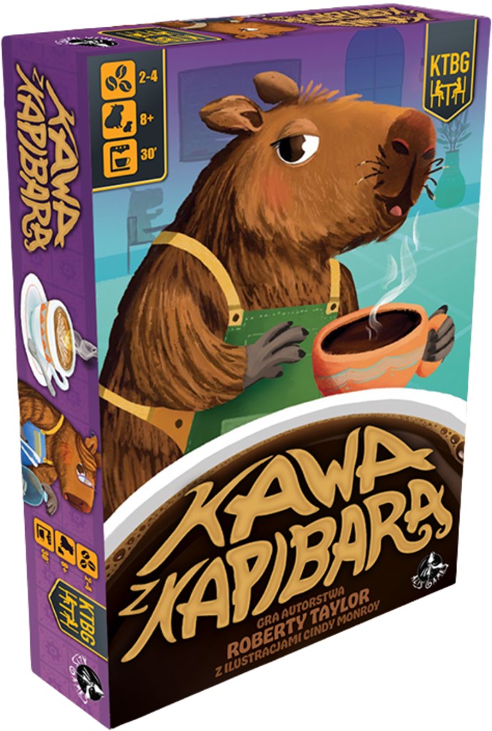 Kawa z kapibarą / gra autorstwa Roberty Taylor ; z ilustracjami Cindy Monroy ; tłumaczenie: Radosław Staszewski. - Bielsko-Biała : AlisGames, © 2025. - 1 pudełko (83 karty Kawiarni, 12 kart Wyjątkowych Gości, 4 karty Lad, 25 monet "1", 8 monet "5", instrukcja) : ilustracje ; 23x16x4 cm.