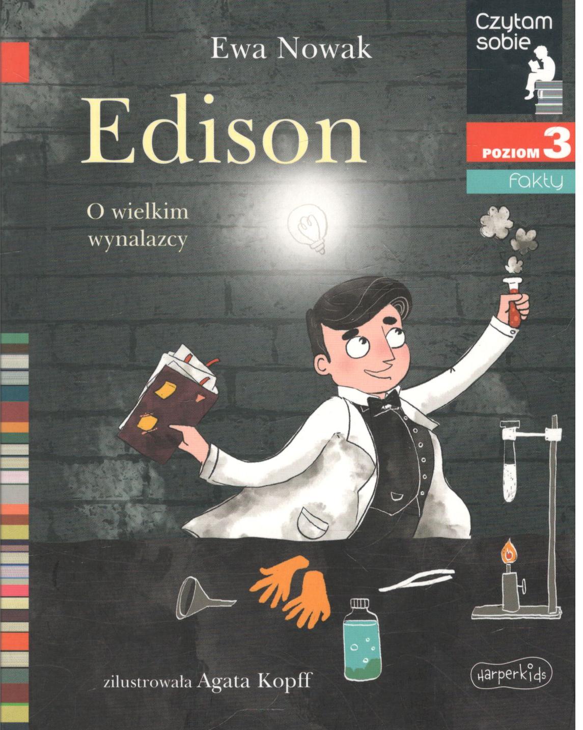Edison : o wielkim wynalazcy / Ewa Nowak ; zilustrowała Agata Kopff. - Warszawa : Harperkids, © 2023. - 63, [1] strona, [1] karta tablic : ilustracje ; 19 cm.