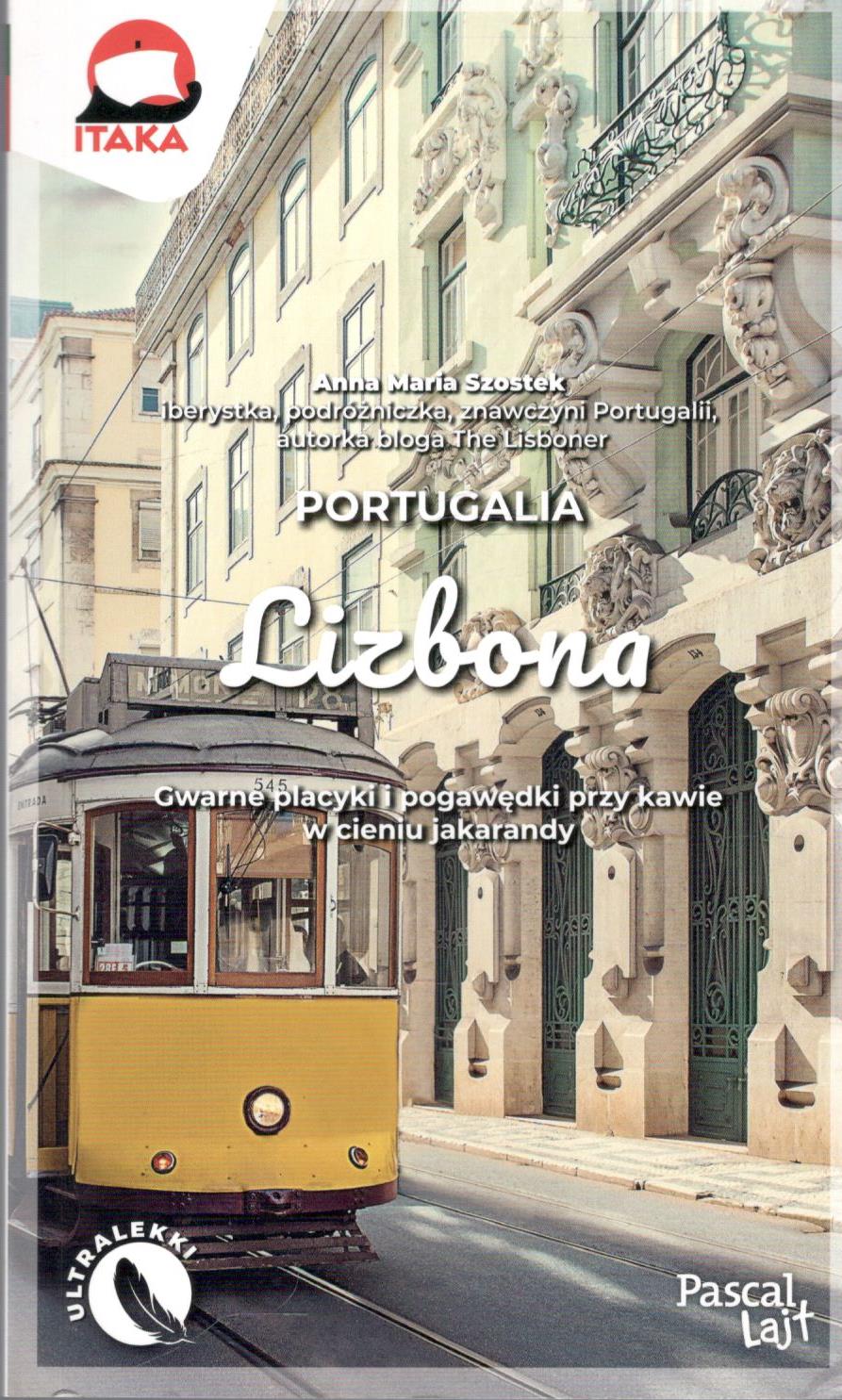 Na okładce pod nazwą autorki: iberystka, podróżniczka, znawczyni Portugalii, autorka bloga The Lisboner. Na okładce: Gwarne placyki i pogawędki przy kawie w cieniu jakarandy. Na stronie tytułowej i okładce logo ITAKA. U dołu okładki: ultralekki.