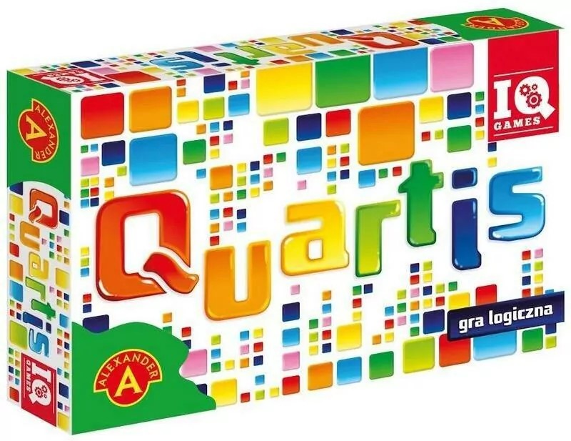 Quartis : gra logiczna. - Chwaszczyno : Alexander, [2020]. - 1 pudełko (karty z figurami 49 szt., karty specjalne 6 szt., kafelki 4 szt., klepsydra, instrukcja) ; 29x20x5 cm.
