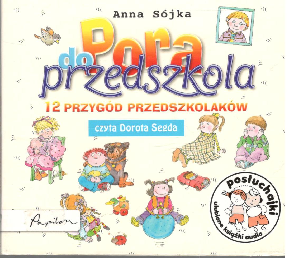 Pora do przedszkola : 12 przygód przedszkolaków / Anna Sójka. - Poznań : Papilon, copyright 2017. - 1 CD (32 min. 58 s) : zapis cyfrowy, stereo ; 12 cm.